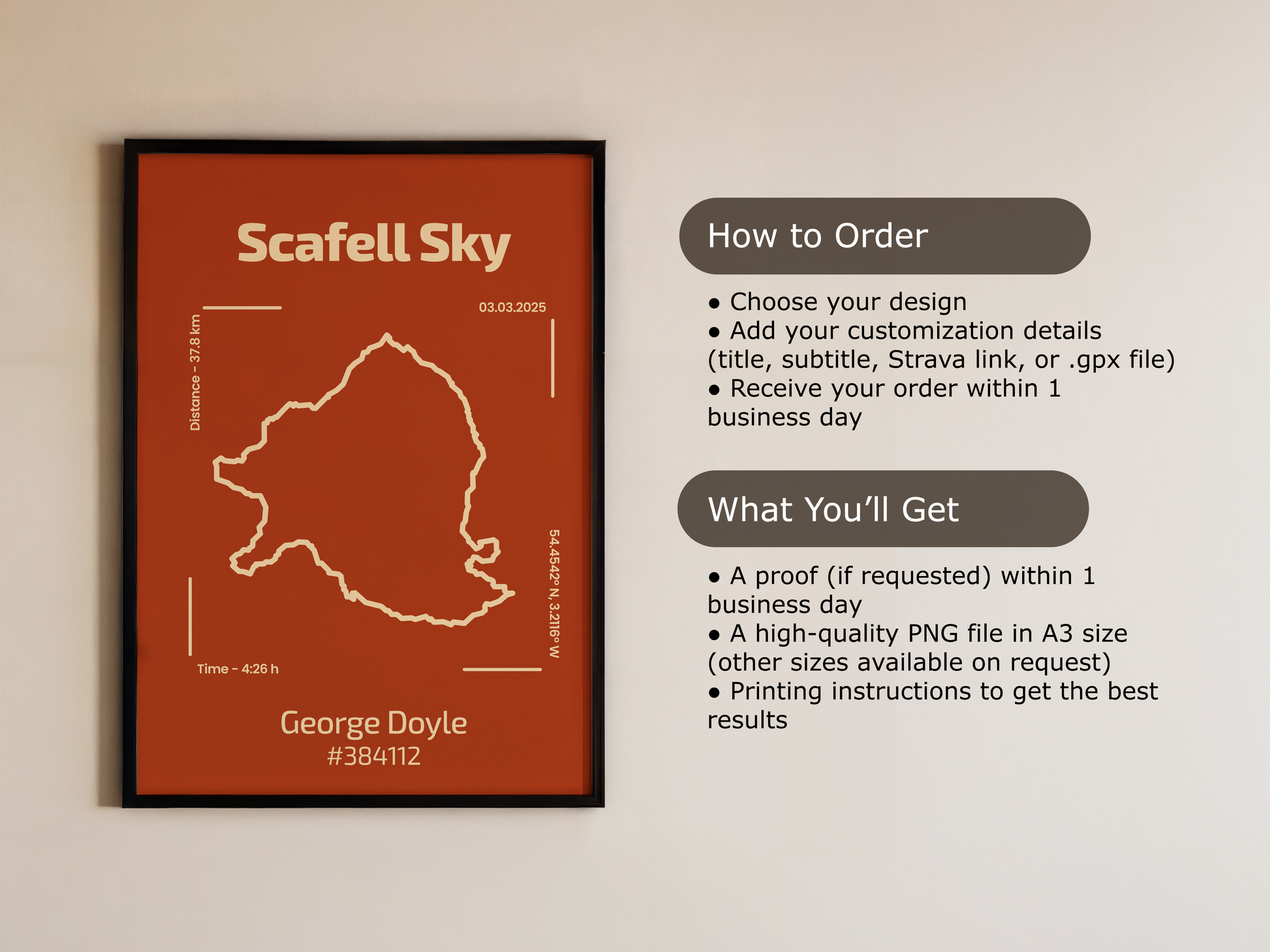 Every design is crafted with care to reflect your unique route. Our signature style is clean, bold, and minimal, perfect for any modern space. Please note: map appearance may vary slightly depending on terrain and road patterns.