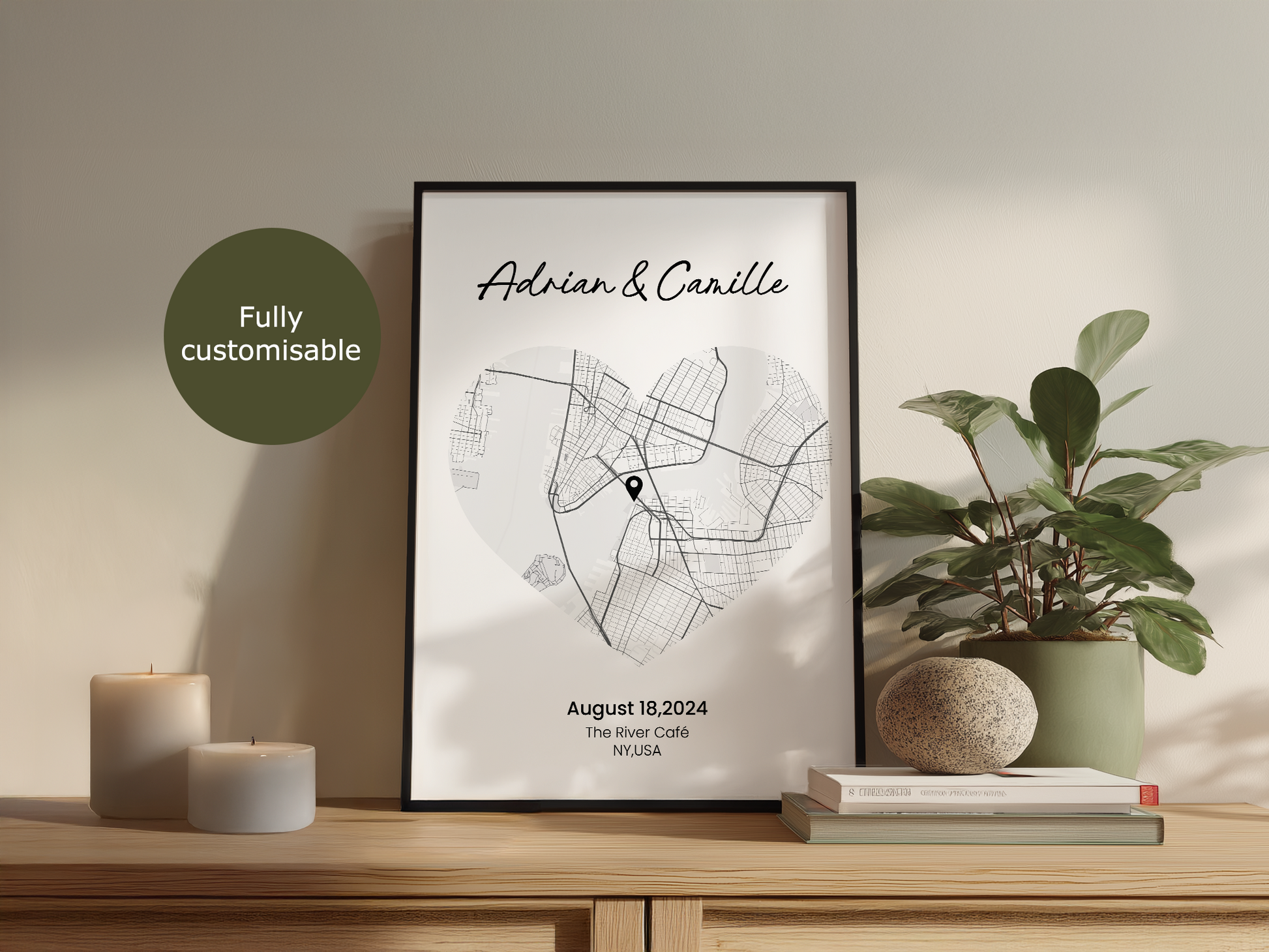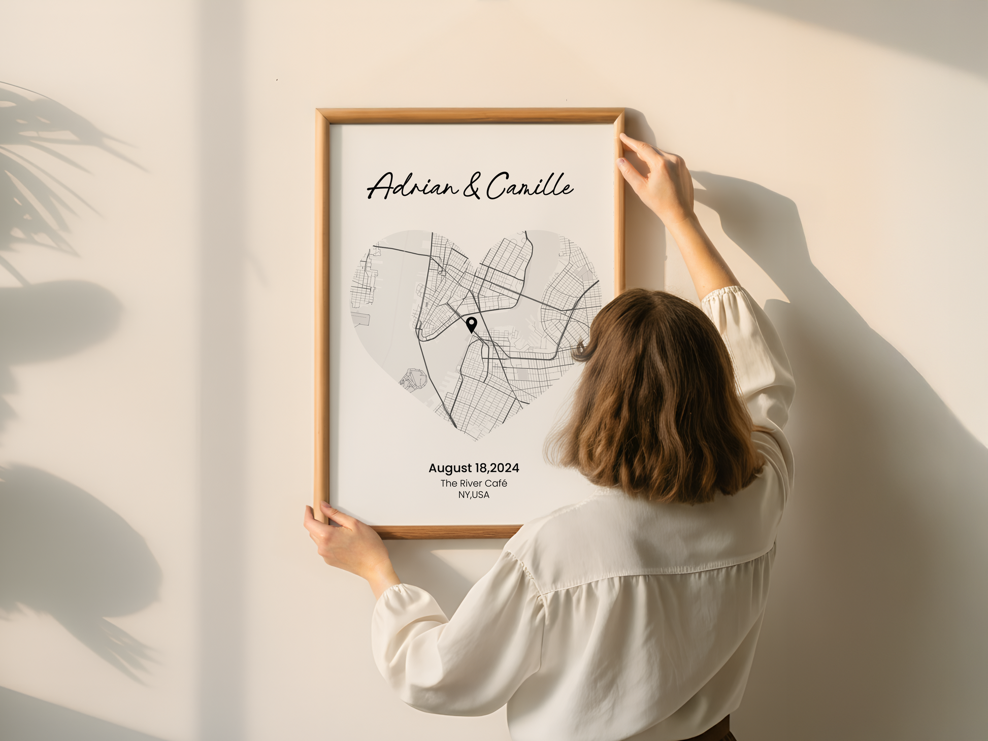Celebrate your special moment with a beautiful and modern custom map poster, designed to capture the exact spot where your love story took the next step. From the moment you said “yes” to forever, this elegant artwork transforms that location into a timeless keepsake.